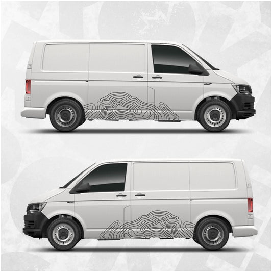 VW Logo Transporter Topographic Map Decals - Quarter Panel Stickers
